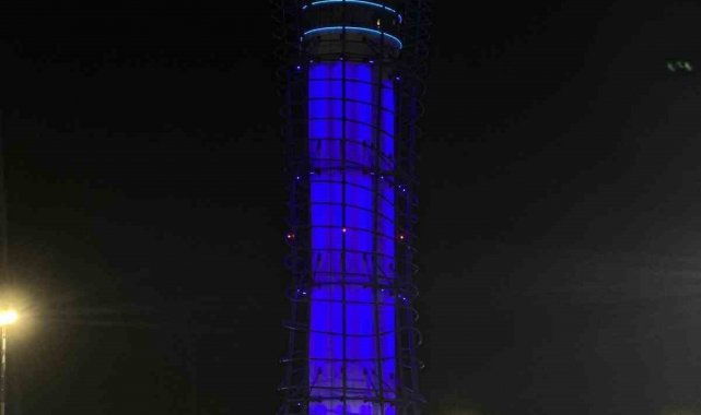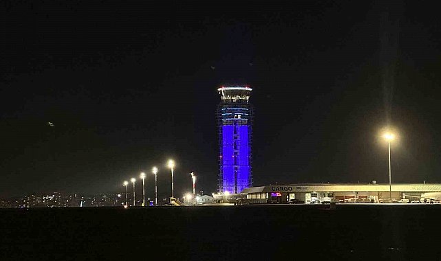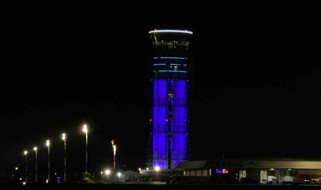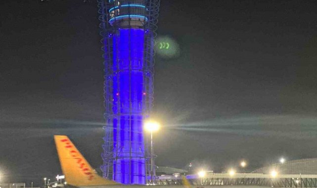 Dünya Otizm Farkındalık Günü nedeniyle Sabiha Gökçen Havalimanı Hava Trafik Kontrol Kulesi mavi ışıkla aydınlatıldı.