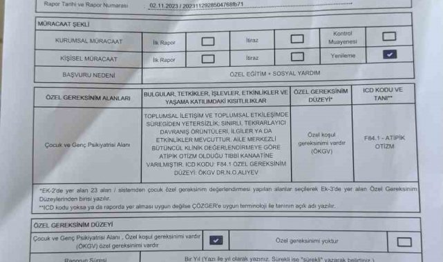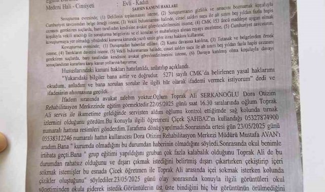 Olayla ilgili soruşturma başlatılırken anne Gamze Serkanoğlu, yaşadığı süreci anlattı. Serkanoğlu, "Oğlum rehabilitasyon merkezinden geldiğinde darbedildiğini fark ettim. Elinde, sırtında morluklar vardı. Bunu kuruma bildirdiğimizde bize geri dönüş sağlanmadı. Bir süre sonra oğlumu darbeden öğretmen arayıp, 'T.A. grup eğitimini istemedi, bana saldırdı. Sonra aramızda arbede yaşandı. Beni de darbetti' açıklamasını yaptı. Biz okula gittik kamera görüntülerini istedik ancak bize 'kayıtlar üst üste bindi, açılmıyor' yanıtı verildi. Biz daha sonra gidip darp raporu aldık ve suç duyurusunda bulunduk" dedi.