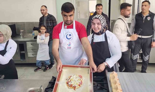 Adıyaman'da otizmli çocuklar kendi elleriyle yaptıkları pizzaları hem kendileri yedi hem de davetlilere ikram etti.