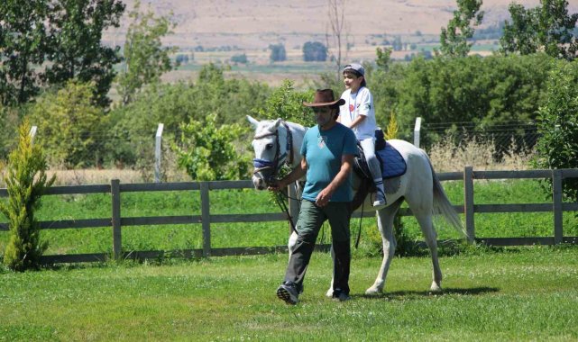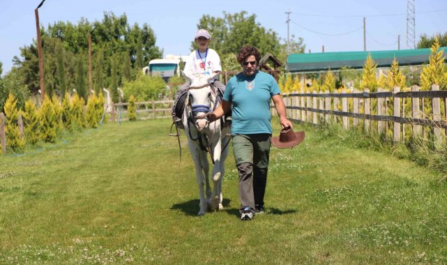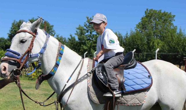 Amasya'da otizmli çocuklar, 'Doğada mavi adımlar' projesi kapsamında at binerek eğlenceli vakit geçirdi.