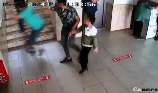 Öte yandan yaşanan olay güvenlik kameralarına yansıdı. Görüntülerde, engelli genci okulun içinde duvara doğru iten H.O.'nun ardından üst kata çıkan gencin peşinden koşarak gittiği görüldü. Görüntülerin farklı bir noktasında ise, H.O. ile öğretmenin yine yan yana geldiği, gencin bir anda yere düşme anı, ardından da diğer veli ve öğrencilerin toplanması yer aldı.