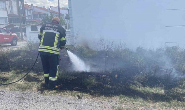 Çorum'da otluk alanda çıkan yangın, itfaiye ekiplerince evlere sıçramadan kontrol altına alındı.