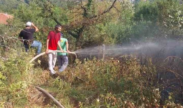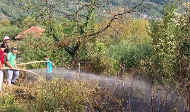 Otluk alanda çıkan yangın evlere ve ormanlık alana sıçramadan söndürüldü