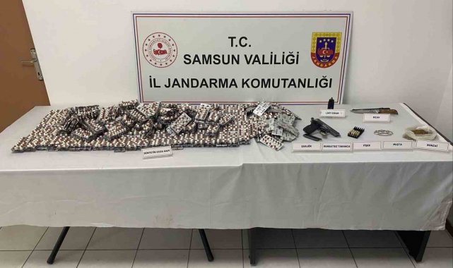 Samsun İl Jandarma Komutanlığı ve Tekkeköy İlçe Jandarma Komutanlığı ekipleri, uyuşturucu madde imal ve ticaretinin önlenmesine yönelik yaptıkları takip ve çalışmada Tekkeköy ilçesi Şabanoğlu Mahallesi 19 Mayıs Sanayi Sitesi'ndeki oto tamirci dükkanı ile İlkadım ilçesi Adalet Mahallesi'ndeki bir ikamete operasyon düzenledi. Oto tamircisi ile ikamet ve bodrumda yapılan aramalarda 12 bin 280 adet sentetik ecza hapı, 30 gram bonzai, içerisine likit esrar doldurulmuş 1 adet elektronik sigara, 1 adet ruhsatsız tabanca, 2 adet şarjör, 21 adet tabanca fişeği, 1 adet muşta ve 1 adet kasatura bıçak ele geçirildi. Okayla ilgili 4 kişi gözaltına alındı. 3 kişi ifadelerinin alınmasının ardından serbest bırakılırken, oto tamirci dükkanı sahibi E.B.A. jandarmadaki işlemlerinin ardından bugün Samsun Adliyesi'ne sevk edildi. Şüpheli, çıkarıldığı mahkemece elektronik kelepçe takılarak ev hapsi ve yurt dışı çıkış yasağı şartıyla serbest bırakıldı.