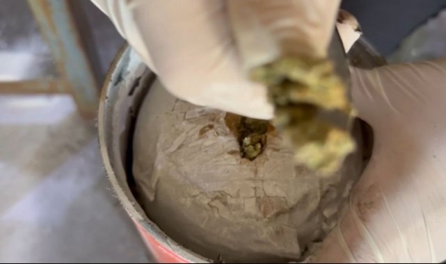 Otobüsün bagaj kısmında yapılan aramada, 2 adet yangın tüpünün içine zulalanmış vaziyette toplam daralı ağırlığı 8 kilogram gelen, skunk olduğu değerlendirilen uyuşturucu madde ele geçirildi.
