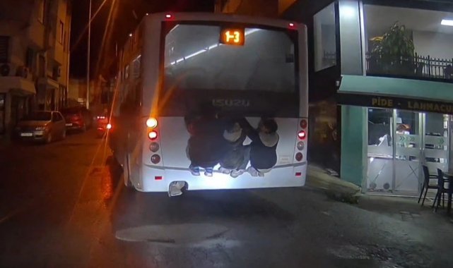 Tekirdağ'ın Süleymanpaşa ilçesinde yaşanan olayda, yaşları küçük 3 çocuk şehir içi sefer yapan bir otobüsün arka bölümüne tutunarak uzun süre yolculuk yaptı. Trafiğin aktığı güzergahta hiçbir güvenlik önlemi olmadan ilerleyen çocuklar, hem kendi canlarını hem de trafikteki diğer sürücüleri tehlikeye attı. Çevredeki vatandaşların uyarılarına aldırış etmeyen çocuklar, korku dolu anların yaşanmasına neden oldu. Otobüs seyir halindeyken yaşanan tehlikeli yolculuk, olası bir kazaya adeta davetiye çıkardı. O anlar cep telefonu kamerasıyla saniye saniye kaydedildi.