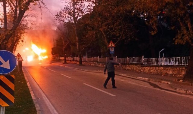 Otobüsün motor kısmı küle döndü, yolcular büyük panik yaşadı
