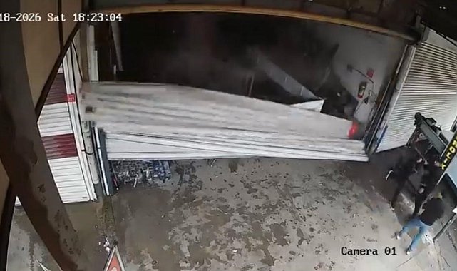 Kentte bulunan sanayi sitesindeki bir oto tamir dükkanında otomatik kepenk kapatılmaya çalışıldı. Kepenk takılarak kapanmayınca bir vatandaşın tekme vurmasıyla düşerek yerle bir oldu. O anlar, iş yerinin güvenlik kamerasına yansıdı.