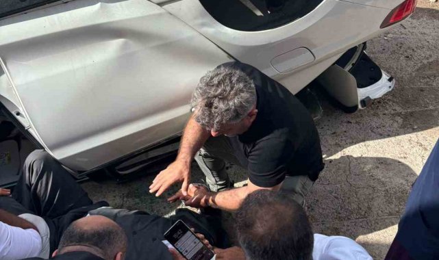 Diyarbakır'ın Sur ilçesinde yaklaşık 3 metre yükseklikten uçan otomobildeki 3 kişi yaralandı.
