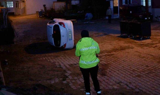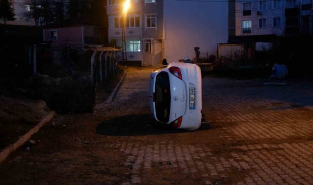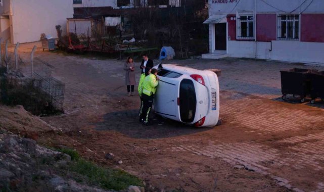 Edirne'nin Barutluk Mahallesi Maslahattin Caddesi'nde seyreden kadın sürücü N.K'nın kullandığı 22 EF 048 plakalı otomobil, sürücüsünün direksiyon hakimiyetini kaybetmesi üzerine yaklaşık 5 metrelik yükseklikten yolun kenarına uçarak yan devrildi.