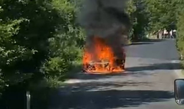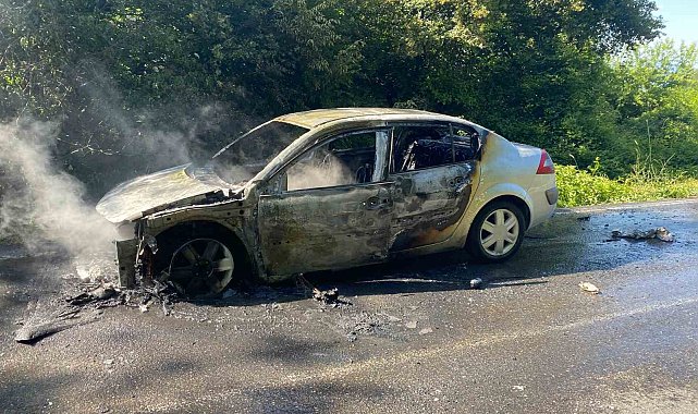 Bolu-Seben kara yolunda bir otomobilin motor kısmında çıkan yangın sebebiyle araç alev topuna döndü. Alev alev yanan otomobilden geriye hurda yığını kaldı.