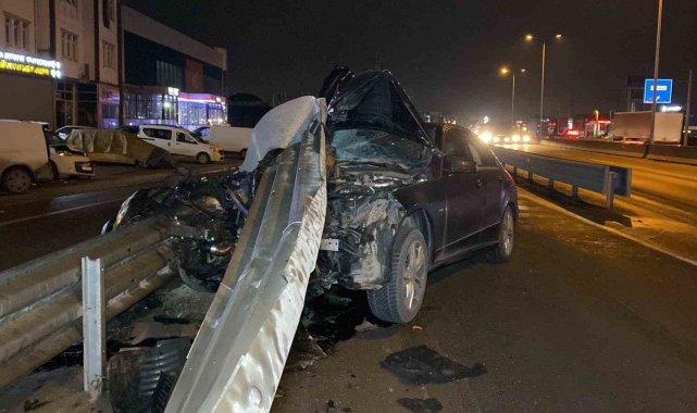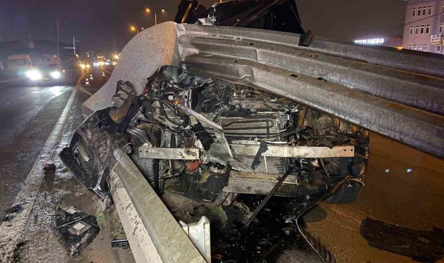 Kocaeli'de seyir halindeki otomobil bariyere saplanarak kullanılamaz hale geldi, sürücü şans eseri yara almadan kurtuldu.