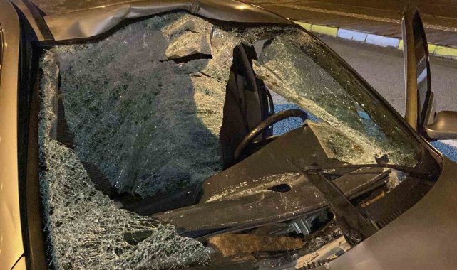 Otomobil başıboş ata çarptı: Sürücü yaralandı, at telef oldu