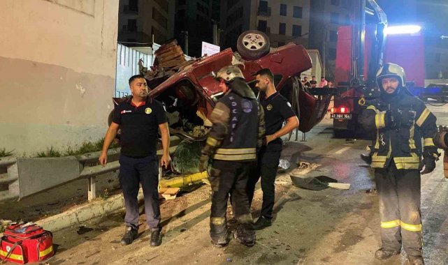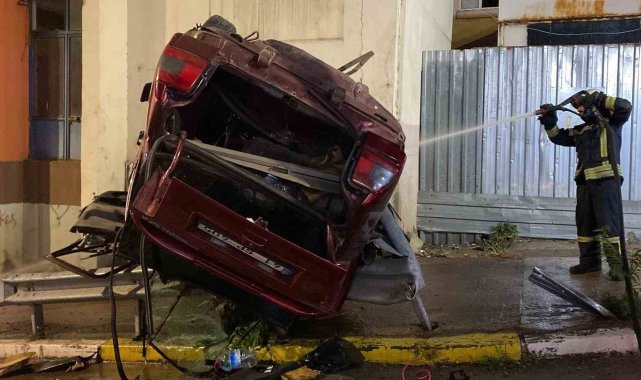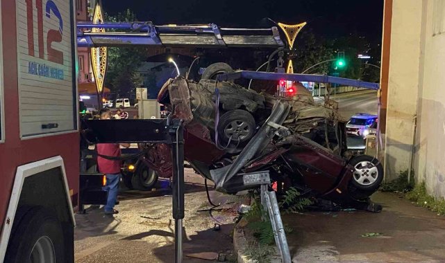 Otomobil, çarptığı bariyerde asılı kaldı: 2 ölü