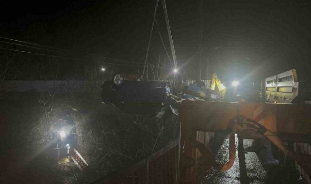 Kocaeli'nin Kandıra ilçesinde çaya uçan otomobildeki baba ve oğlu hayatını kaybetti.
