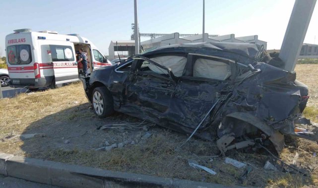 Otomobil direğe ok gibi saplandı: 3 yaralı