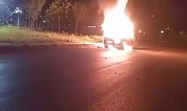Yangında çevrede başka araç bulunmaması büyük bir faciayı önlerken, otomobil tamamen yanarak kullanılamaz hale geldi.