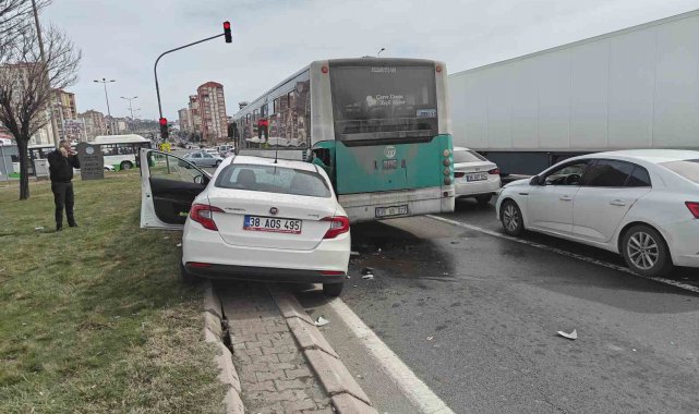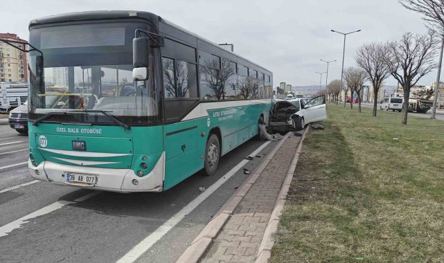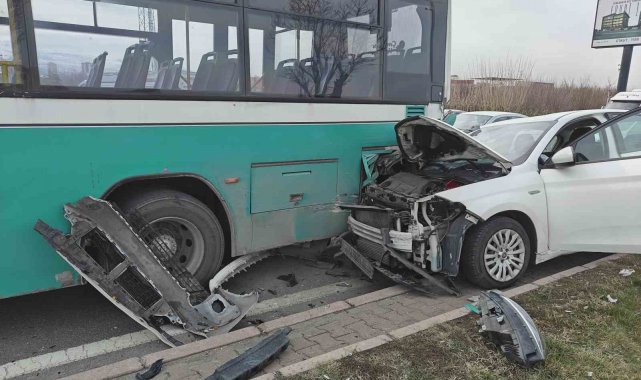 Kayseri'nin Melikgazi ilçesinde otomobilin halk otobüsüne çarpması sonucu meydana gelen kazada araçlarda maddi oluştu.