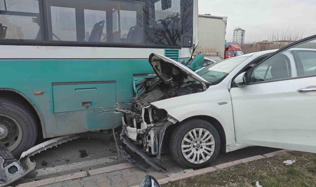 Otomobil halk otobüsüne çarptı, maddi hasar oluştu