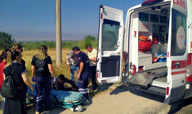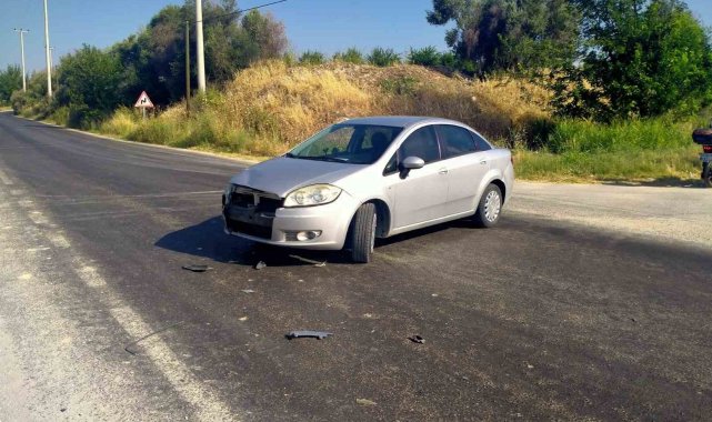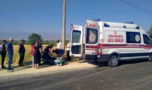 Denizli'de motosiklet ile otomobilin çarpıştığı kazada tarlaya uçan motosiklet sürücüsü yaralandı.