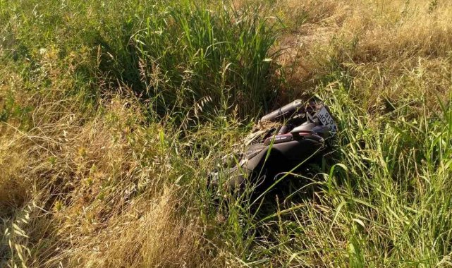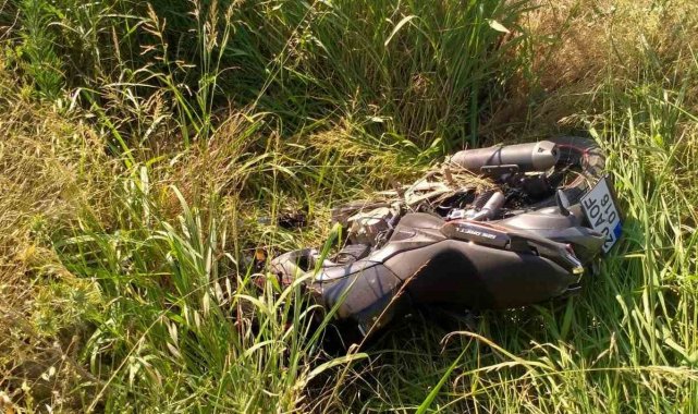 Otomobil ile çarpışan motosiklet sürücüsü tarlaya uçtu