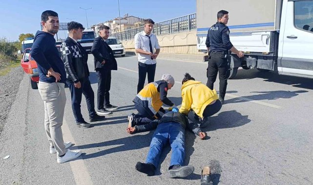 Antalya'da motosiklet ile otomobilin çarpışması sonucu meydana gelen trafik kazasında çarpışmanın etkisiyle yaklaşık 50 metre sürüklenen motosiklet sürücüsü yaralandı.