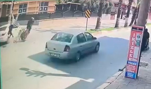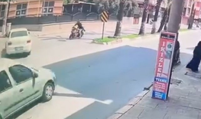 Öte yandan kaza anı, çevrede bulunan bir iş yerinin güvenlik kamerasına saniye saniye yansıdı. Görüntülerde, seyir halindeki otomobilin tali yola dönüş yaptığı sırada karşı yönden gelen motosikletin araca çarpması ve motosiklet sürücüsünün savrulduğu anlar yer aldı.