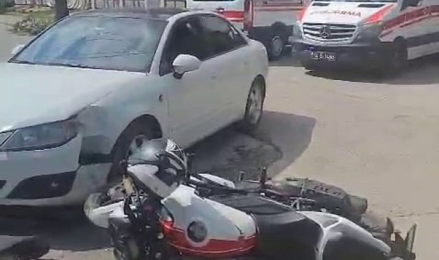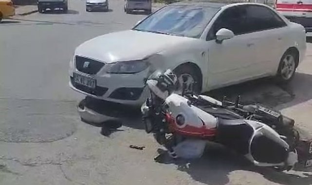 Otomobil ile motosikletin çarpıştığı kaza kamerada