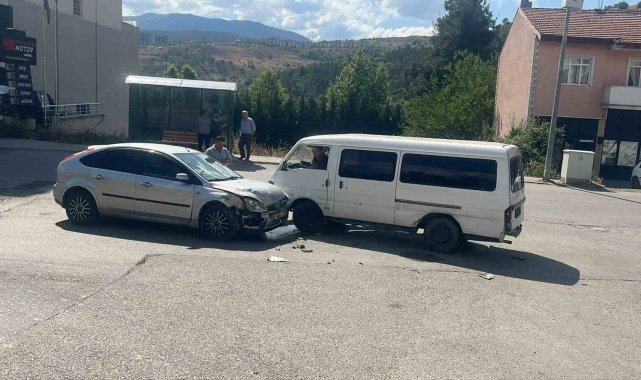 Karabük'te otomobille panelvan minibüsün çarpıştığı kaza maddi hasarla atlatılırken, kaza anı güvenlik kamerasına yansıdı.
