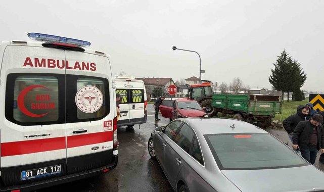 Düzce'de otomobil ile traktörün kavşakta çarpıştığı kazada 2 kişi hafif yaralandı.