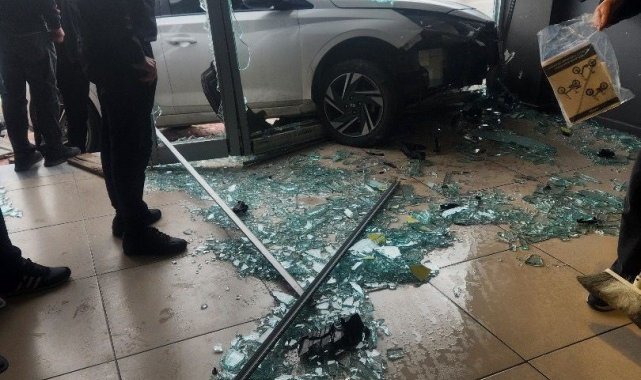 Otomobil iş yerinin vitrininden içeri girdi