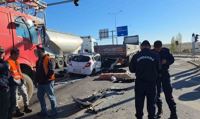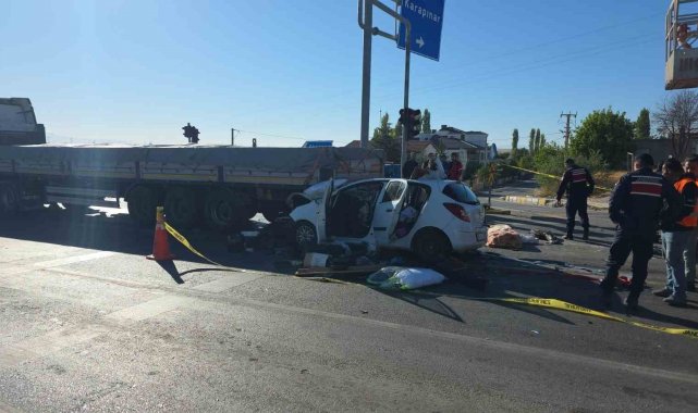 Aksaray'da kırmızı ışıkta bekleyen tıra arkadan çarpan otomobildeki anne öldü, sürücü oğlu ise ağır yaralandı.