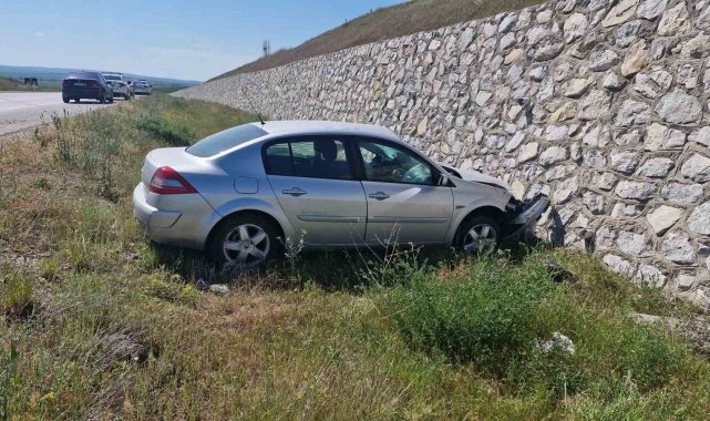 Çorum'un Alaca ilçesinde yoldan çıkan otomobilin istinat duvarına çarpması neticesinde meydana gelen kazada 2 kişi yaralandı.