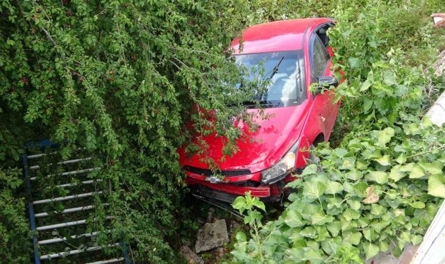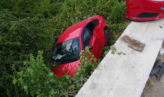 Otomobil istinat duvarından ağaçlık alana uçtu: 4 yaralı