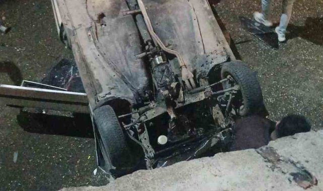 Çorum'da otomobil, 3 metrelik istinat duvarından okulun bahçesine düştü. Araçta bulunan 2 kişi yaralandı.