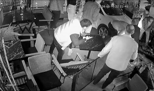 Kaza anı iş yerinin güvenlik kamerasına anbean yansıdı. Görüntülerde müşterilerin kafede oturduğu sırada otomobilin içeriye daldığı ve bir kişinin aracın altında kaldığı anlar yer aldı. Polis ekipleri kazayla ilgili inceleme başlattı.