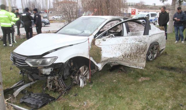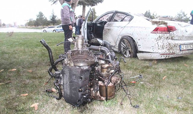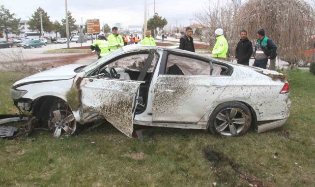 Konya'nın Beyşehir ilçesinde kontrolden çıkan otomobil, kavşakta devrildi. Ortalığın adeta savaş alanına döndüğü kazada sürücü yaralandı.