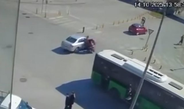 Denizli'de kontrolsüz bir şekilde kavşağa giren otomobil, motosiklet ile çarpıştı. Çarpışmanın etkisiyle motosiklet sürücüsü yaralanırken kazanın güvenlik kamera görüntüleri ortaya çıktı.