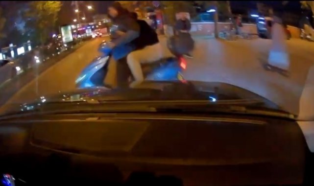 Otomobil motosiklete çarptı, 2 kişi yaralandı: Kaza anı kemarada