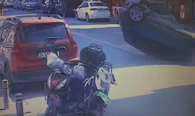 Yaşanan o kaza anı ise çevredeki bir iş yerinin cep telefonu kamerasına yansıdı.