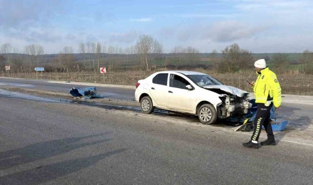 Edinilen bilgilere göre, Lüleburgaz ilçesine bağlı Ataköy istikametinden Pınarhisar Çevre Yolu girişine seyir halinde olan bir otomobil, yol ayrımı noktasında sürücüsünün duble yol girişini direksiyon fark edememesi sonucu yön tabelasına çarptı.