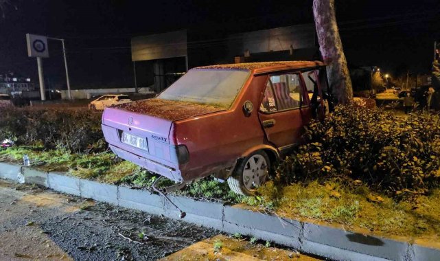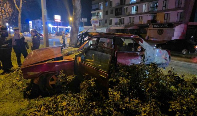 Otomobil refüjdeki ağaca çarptı: 1 kişi yaralandı