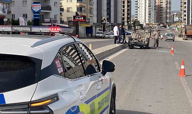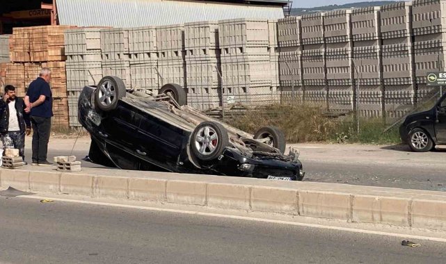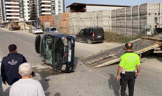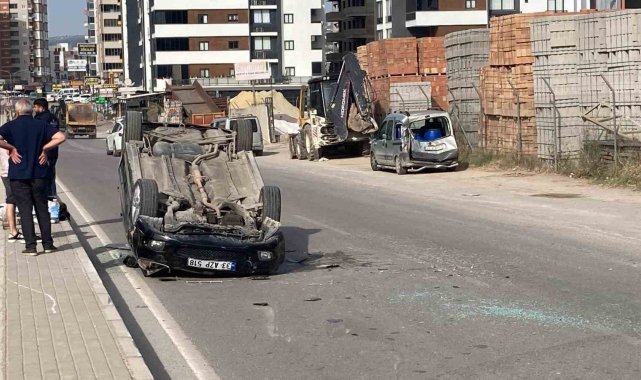 Otomobil refüje çarpıp, iki araca vurup ters döndü