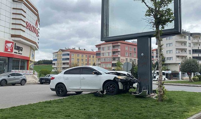 Otomobil reklam panosuna çarptı, sürücü kazayı yara almadan atlattı