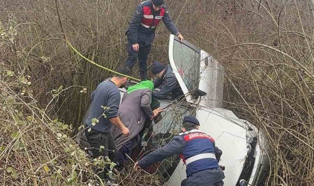 Bartın'ın Hasankadı Beldesi'nden Kozcağoz Beldesi istikametine seyir eden ve sürücüsünün ismi belirlenemeyen 74 BS 374 plakalı otomobil, yağış nedeniyle kayganlaşan yolda önünde seyir eden aracı sollamaya çalıştı. Islak yolda kontrolden çıkan otomobil karşı şeride geçerek şarampole uçtu. Çalılık alana devrilen otomobilde bulunan biri kadın 2 kişi, olay yerine gelen jandarma ekipleri tarafından sıkıştıkları araçtan çıkarıldı.