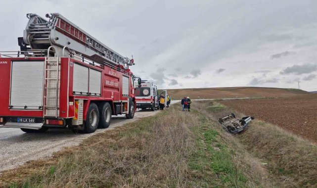 Çorum'un Alaca ilçesinde otomobilin takla atması neticesinde meydana gelen kazada 2 kişi yaralandı.