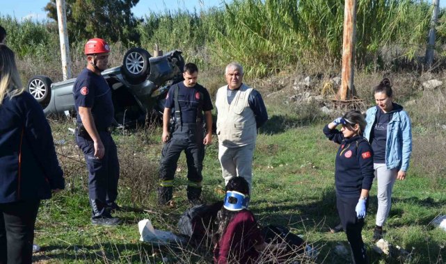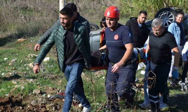 Antalya'nın Serik ilçesinde otomobilin takla atarak şarampole yuvarlandığı kazada aynı aileden 3 kişi yaralandı.