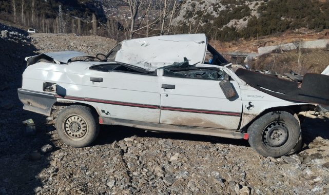Mersin'de şarampolden aşağı yuvarlanan ve hurdaya dönen otomobilin sürücüsü ağır yaralandı.