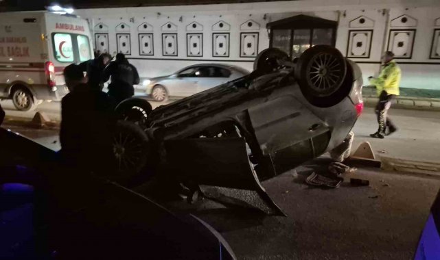 Olay, dün akşam saat 23.00 sıralarında Hoşnudiye Mahallesi İstasyon Caddesi'nde meydana geldi. Edinilen bilgilere göre; Ö.A. (39) isimli kadının idaresindeki 26 E 0210 plakalı otomobil, sürücünün direksiyon hakimiyetini kaybetmesi sonucu orta refüjdeki taş bariyerlere çarparak takla attı. Savrulan otomobil park halindeki 26 AEF 540 plakalı otomobile de çarparken, yolun ortasında ters döndü.