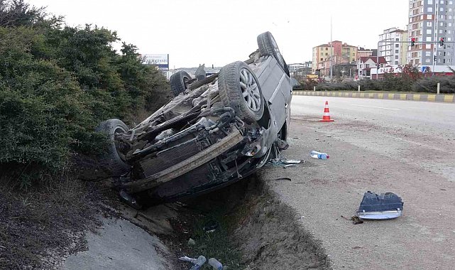 Otomobil takla attı, 2 kişi küçük sıyrıklarla araçtan çıktı